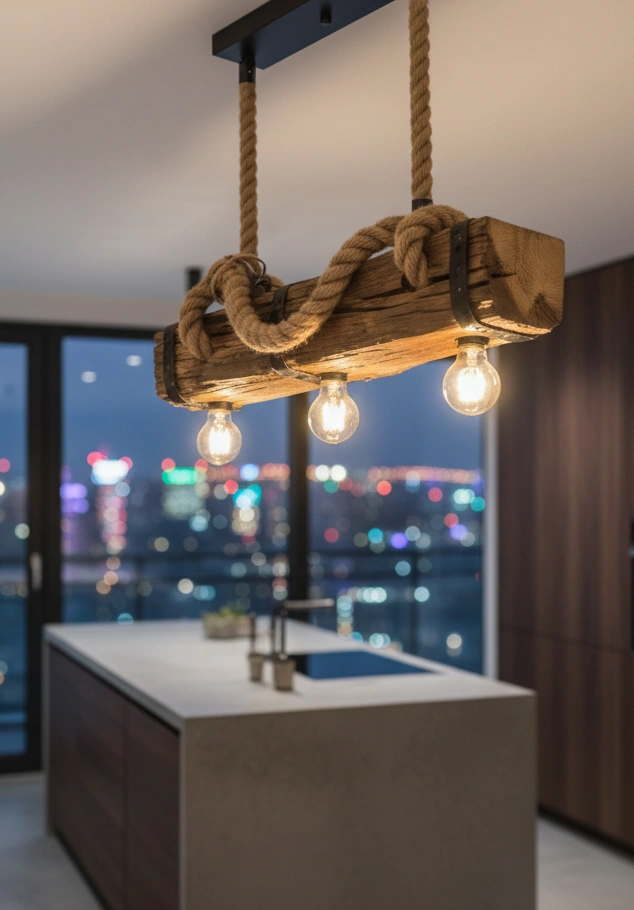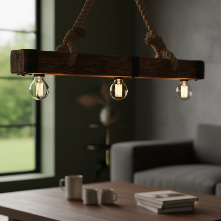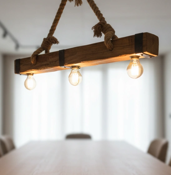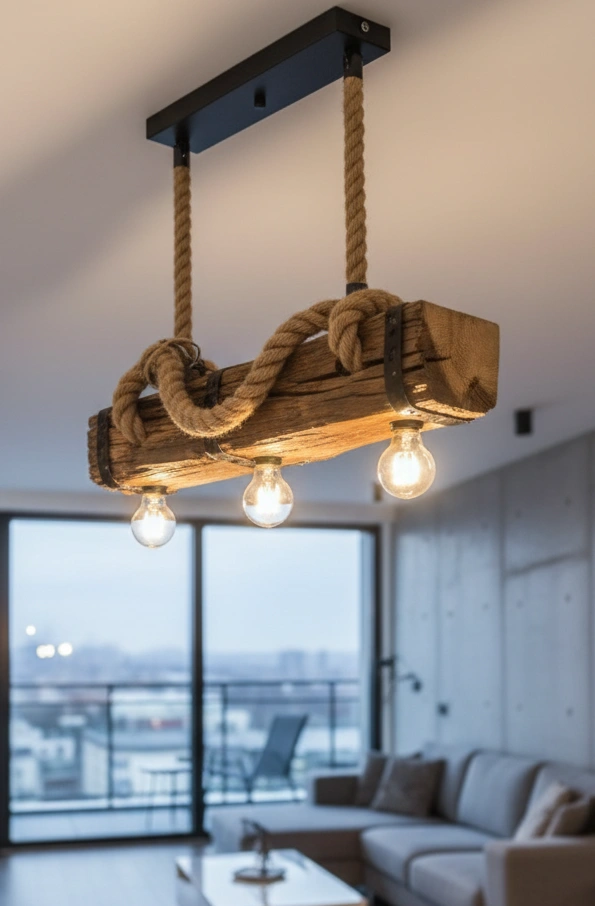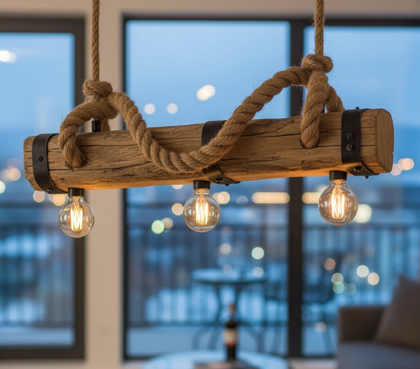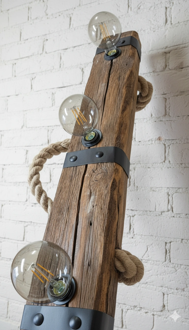 Lampa drewniana ze starej belki – naturalne oświetlenie w stylu vintage
