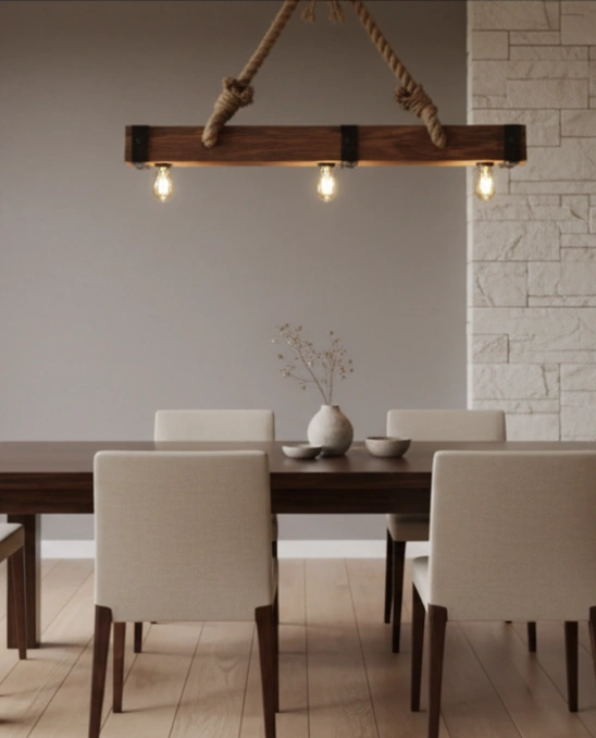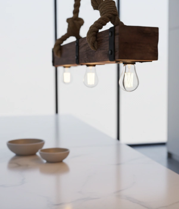 Każdy element przechodzi ręczny proces obróbki. Obejmuje on dokładne szlifowanie, barwienie oraz końcowe zabezpieczenie powierzchni. Dzięki temu struktura słojów, pęknięć i naturalnych przebarwień pozostaje wyraźnie widoczna. Jednocześnie zachowuje swój autentyczny charakter. To właśnie te detale nadają lampie rustykalny wygląd, którego nie da się odtworzyć w produkcji seryjnej.