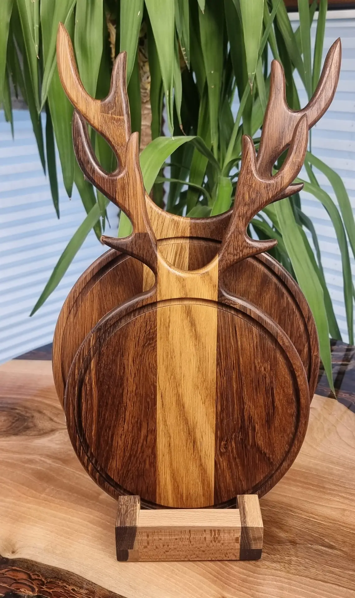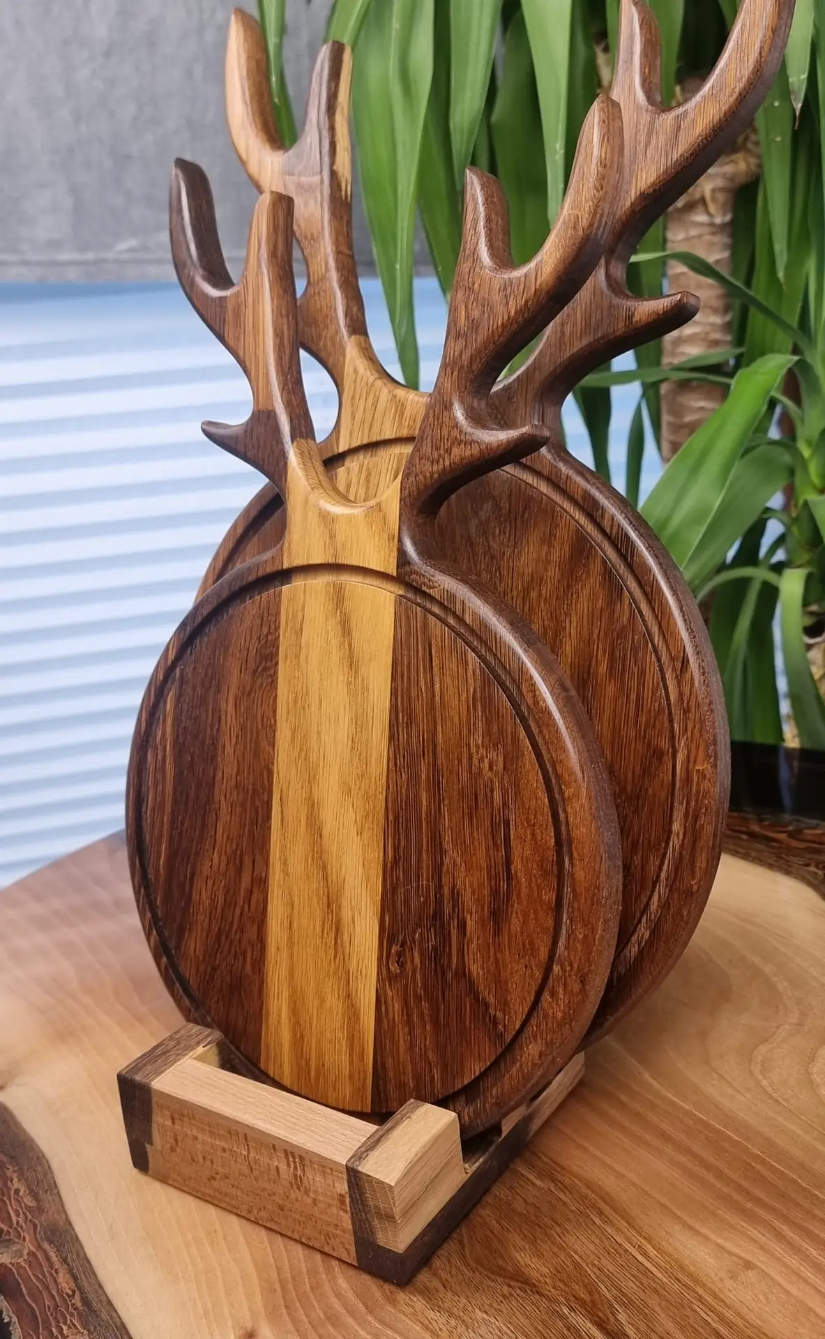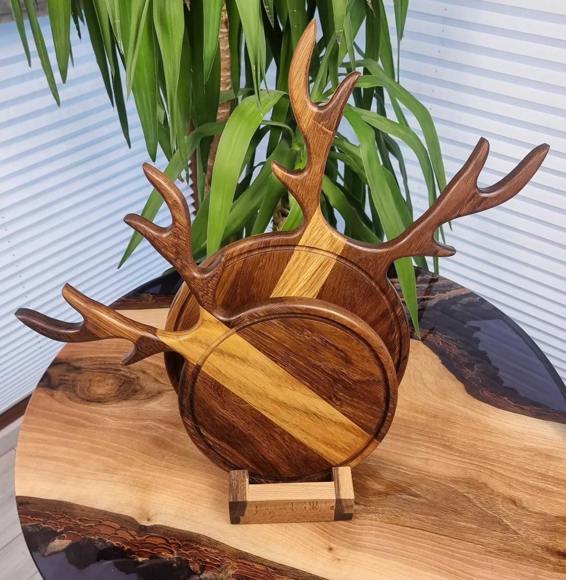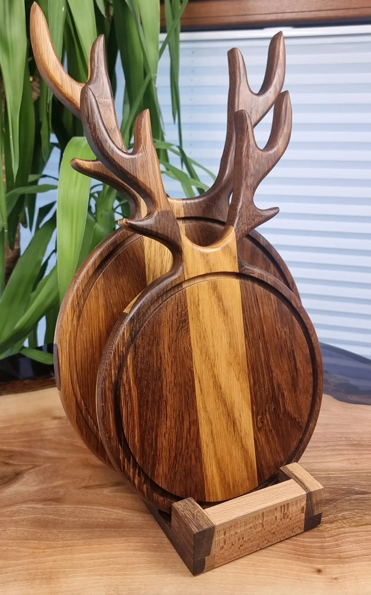 Zestaw desek do krojenia z dębu łączy trwałość, naturalne piękno i dopracowany detal. Dlatego od razu wyróżnia Twoją kuchnię. Co więcej, okrągły kształt i rękojeści inspirowane jelenimi rogami nadają całości rustykalny charakter.